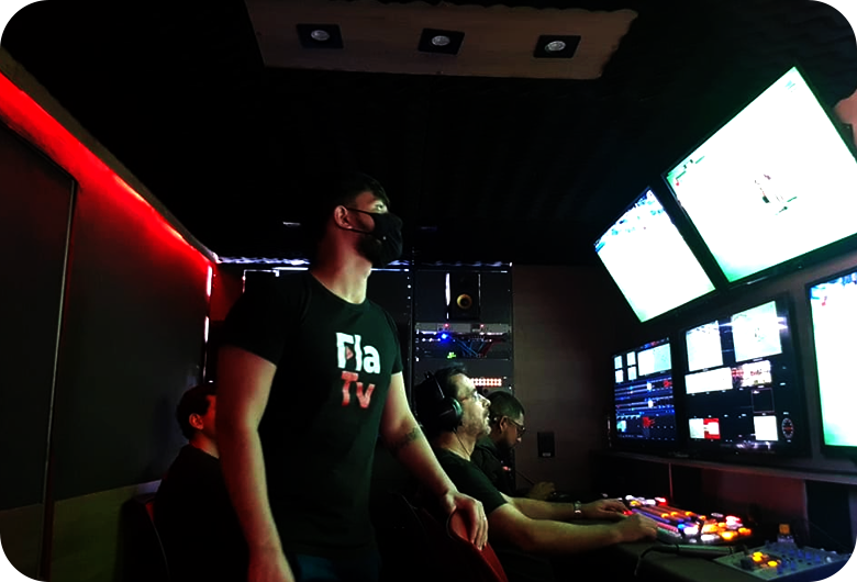 Aqui todas as etapas do processo de transmissão são oferecidas aos nossos clientes: desde a criação dos cenários, figurino, logística da transmissão, passando pela estrutura de internet, contratação de apresentadores e locutores até a transmissão propriamente dita.