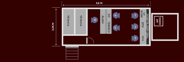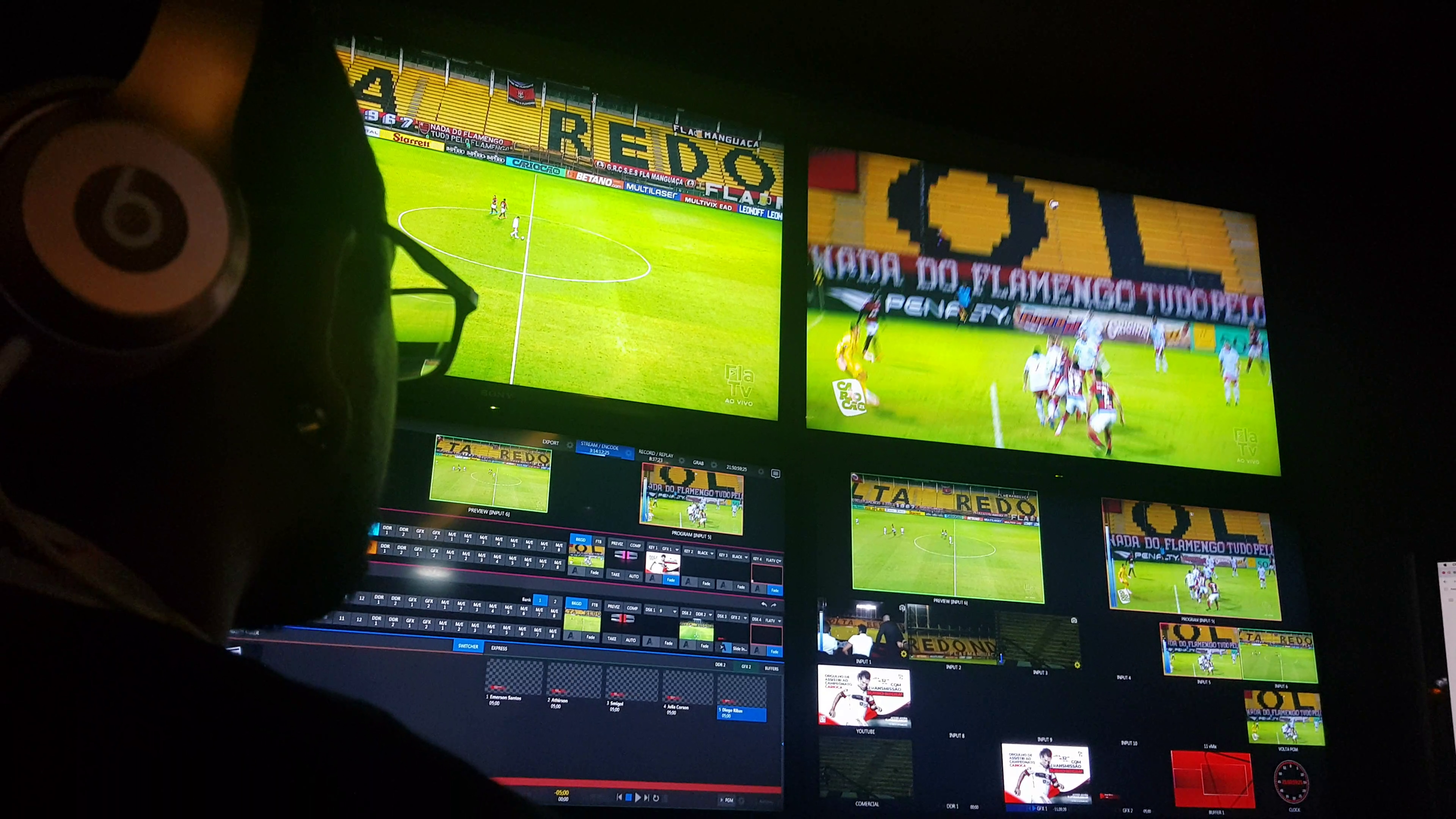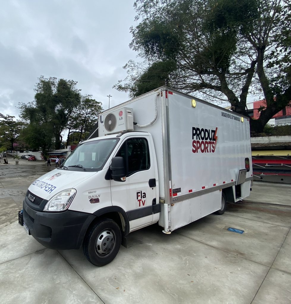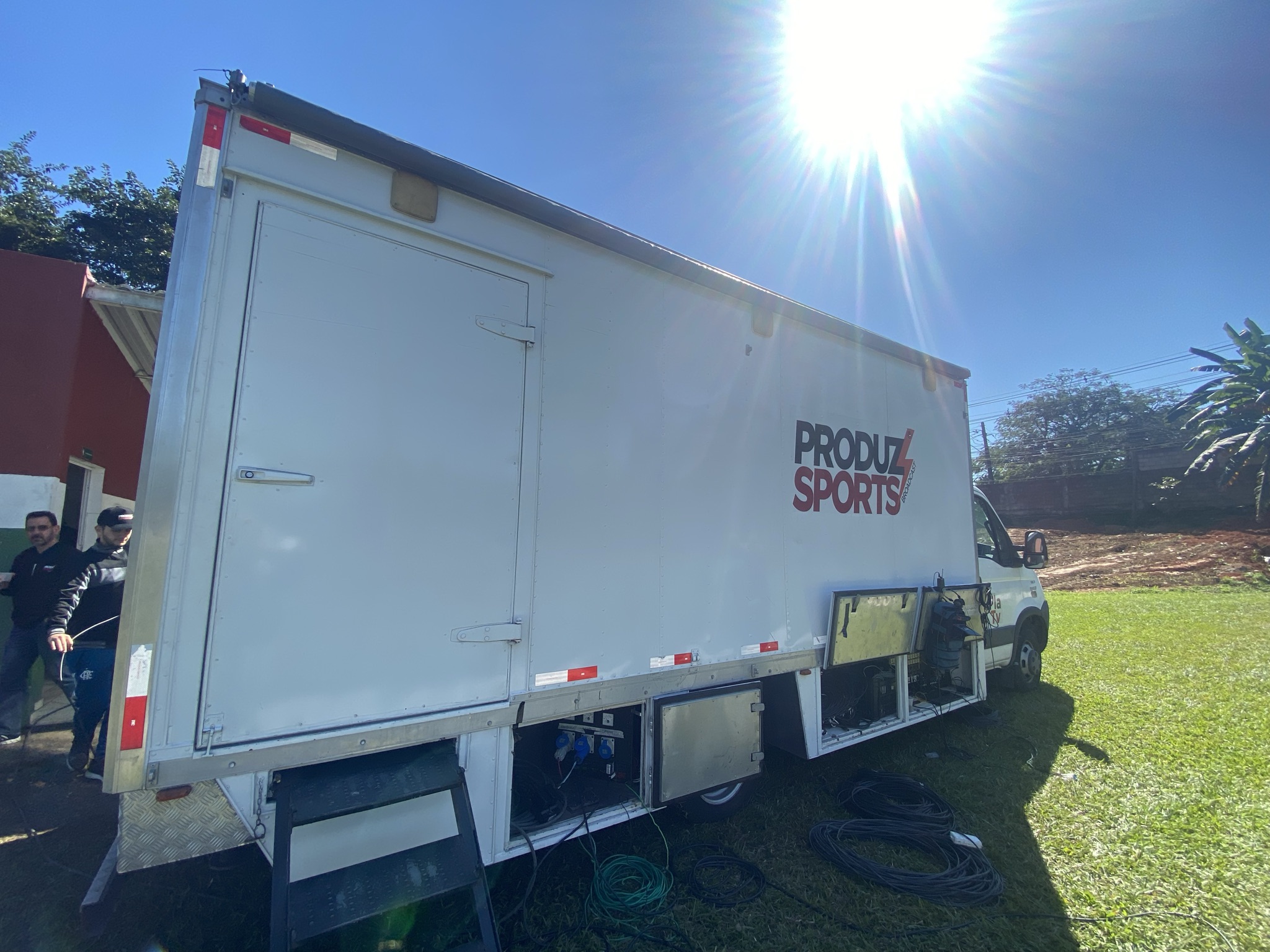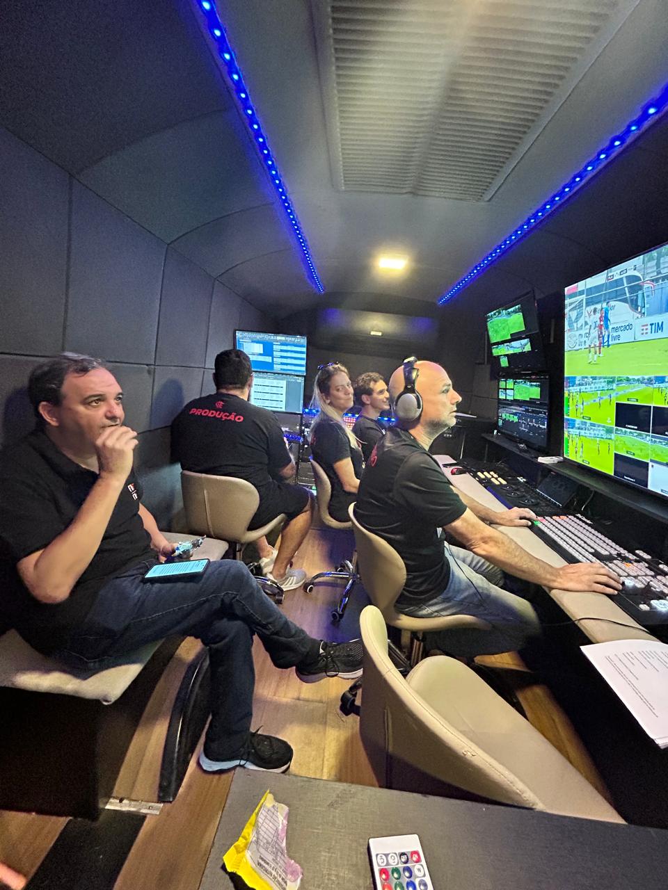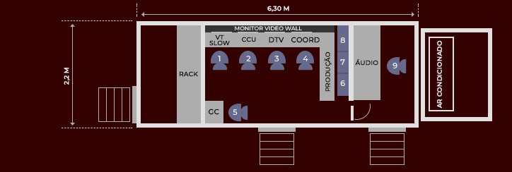 Equipado para recepção de sinal com cabines de narração, central de produção, switcher de video e central de áudio.